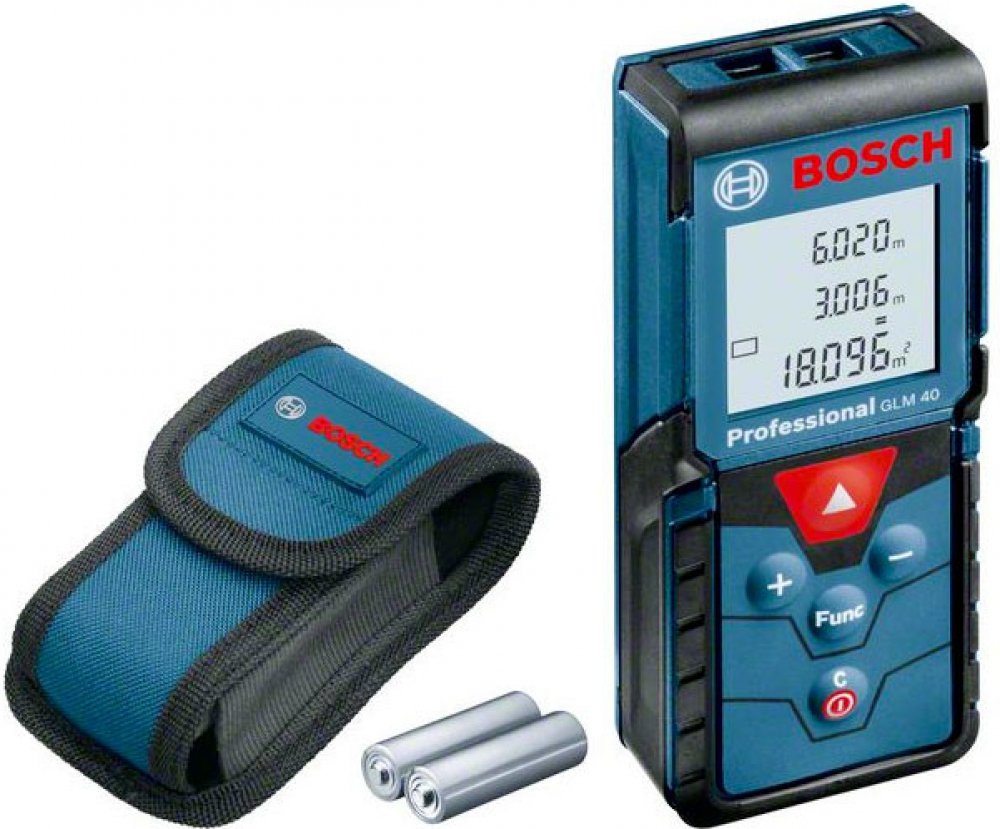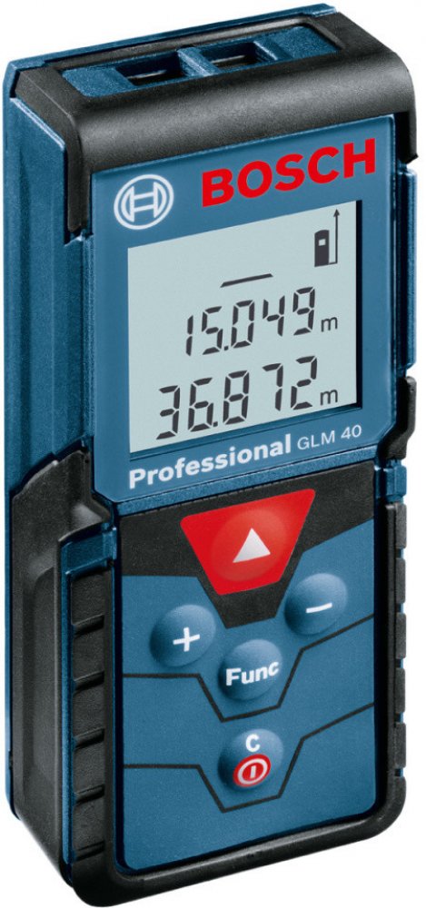 • S laserovým dálkoměrem Bosch GLM 40 rychle a jednoduše zjistíte nejen požadovanou délku, ale díky integrovaným funkcím i plochu či objem. Spolehnout se můžete na přesnou laserovou technologii pro měření vzdáleností až do 40 m. Disponuje dobře čitelným třířádkovým podsvíceným displejem a jednoduchým ovládáním pomocí tlačítek , které zvládne opravdu každý. Jistě oceníte kompaktní rozměry a robustní kryt, který mu zaručuje odolnost vůči pádu z výšky 1 m. Navíc je držitelem krytí IP54, takže je odolný proti stříkající vodě a prachu. Nechybí ani praktická funkce paměti umožňující snadný přístup k posledním 10 měření.