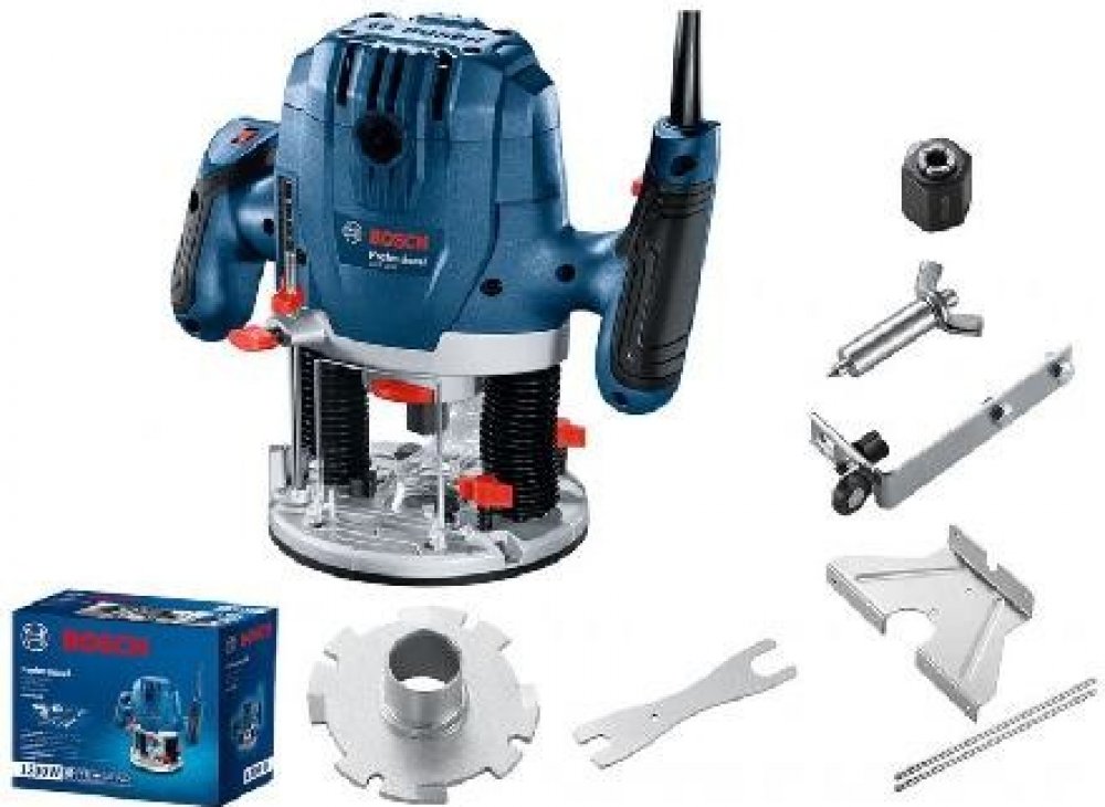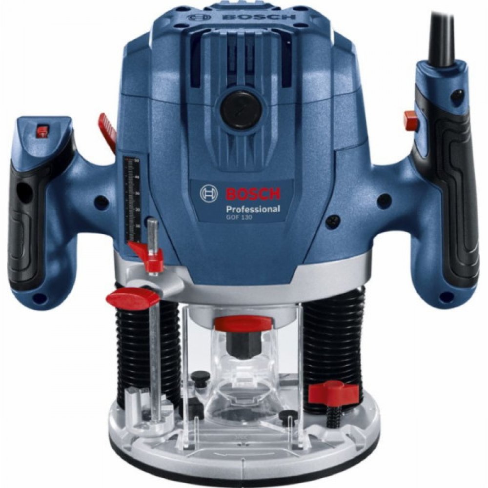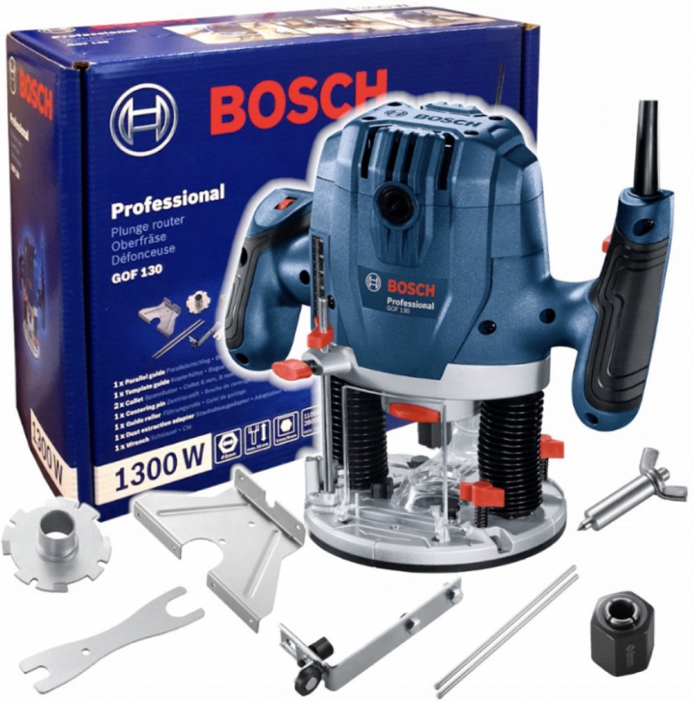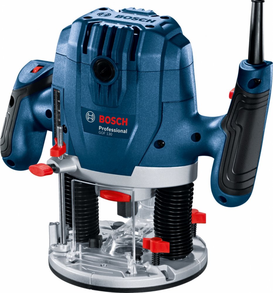 Horní frézka Bosch GOF 130 je určena k frézování drážek, hran, profilů a podélných otvorů na pevném podkladu a kopírovacímu frézování do: