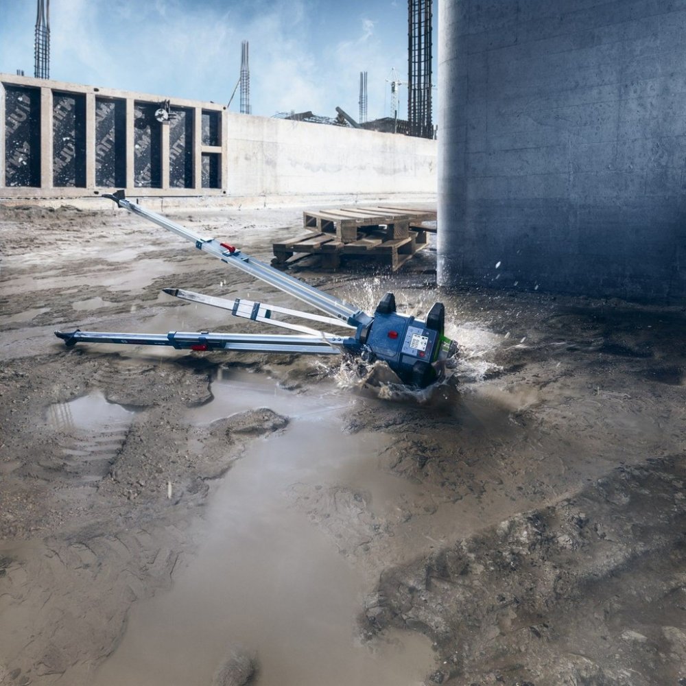 Měřící přístroj má odolnou konstrukci s inovativním designem rukojeti, která zaručuje ochranu proti pádu při převrácení stativu z výšky až 2 m. Díky uzavřené přihrádce akumulátoru je laser navíc kompletně chráněný třídou ochrany IP68.