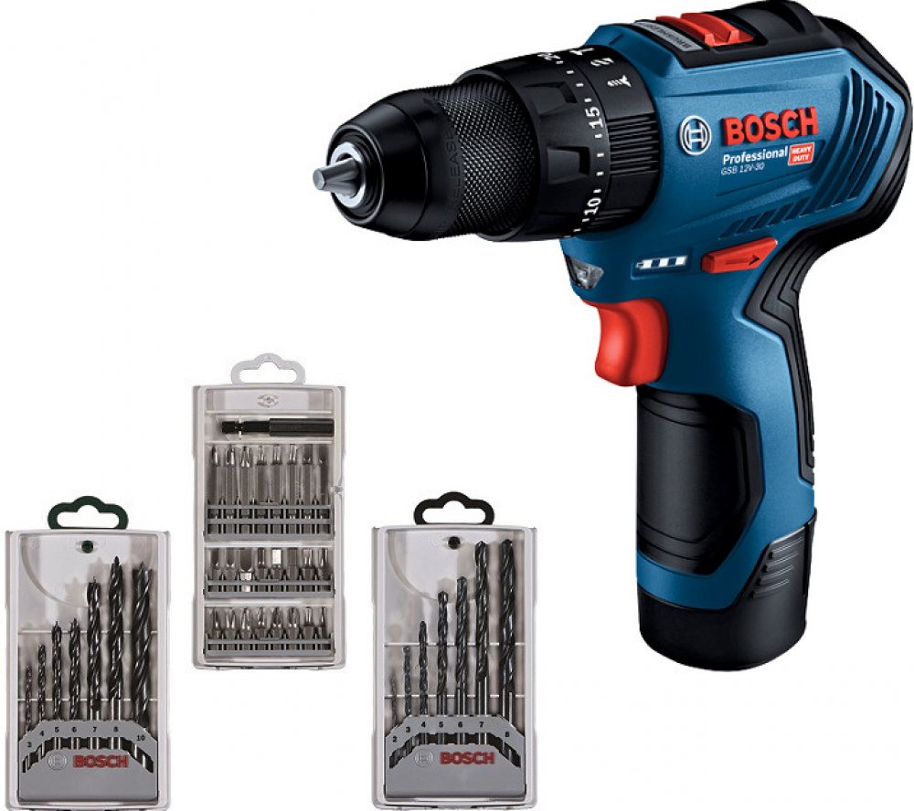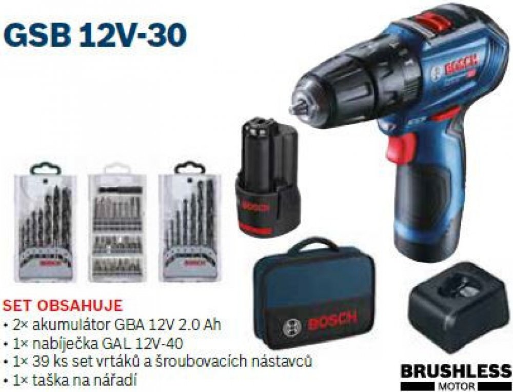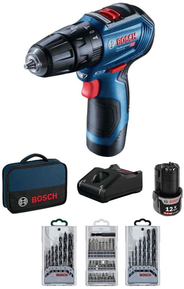 Rozsah dodávky aku příklepové vrtačky Bosch GSB 12V-30