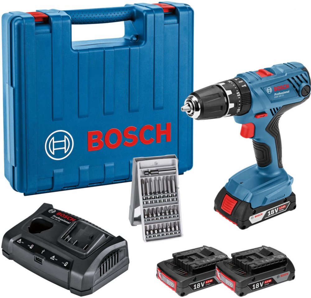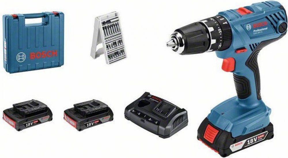 Akumulátorový vrtací šroubovák Bosch GSB 18V-21 je vhodný pro vrtání a šroubování při každodenním profesionálním použití. 2-rychlostní planetový převod zajišťuje, že hodnoty točivého momentu a otáček jsou přizpůsobeny materiálu a aplikaci.