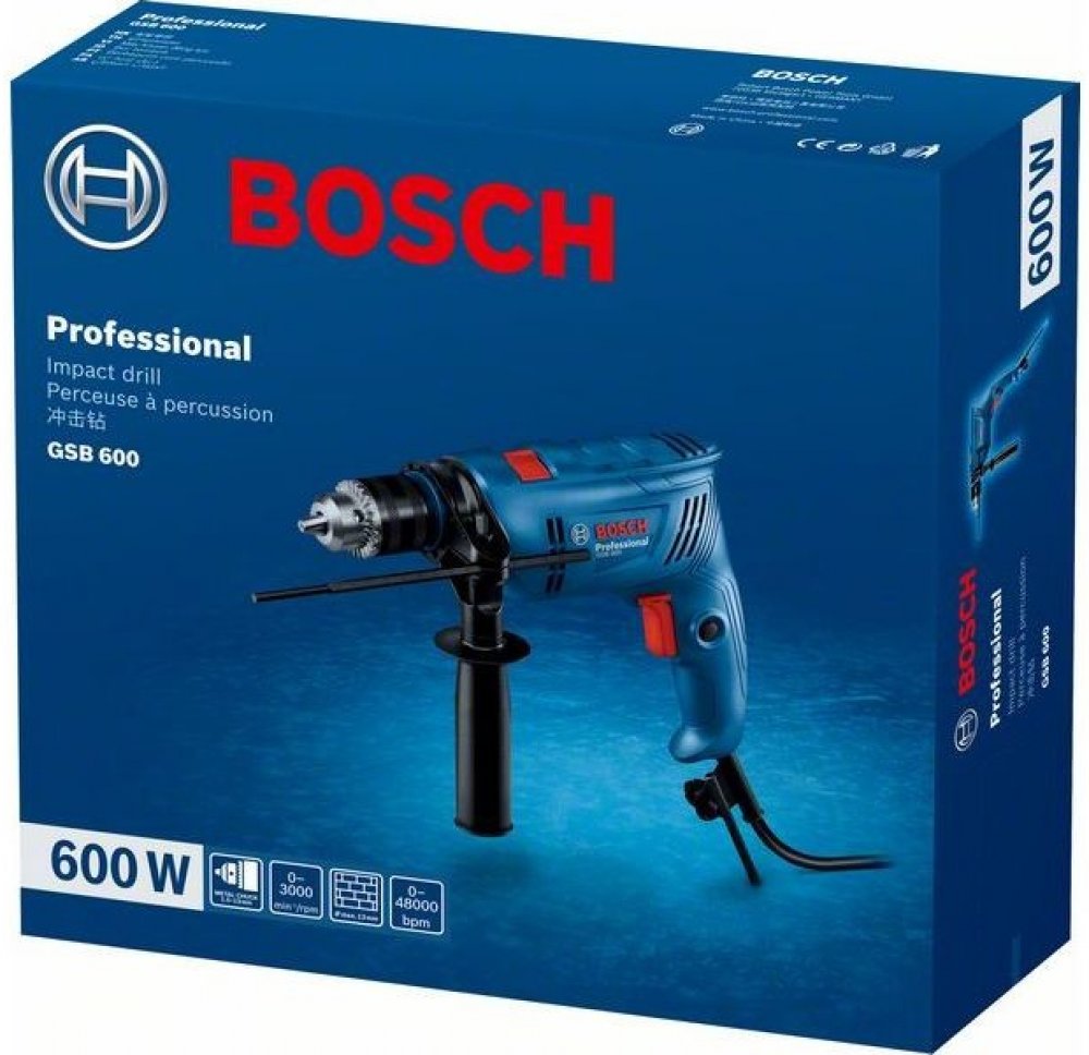 Elektrická příklepová vrtačka Bosch GSB 600 je spolehlivý nástroj určený pro široké spektrum pracovních činností. Vysoce účinný a robustní motor s výkonem 600 W zajišťuje vynikající výkon i při náročném nasazení. Díky tomuto vylepšenému motoru je práce efektivnější a rychlejší.