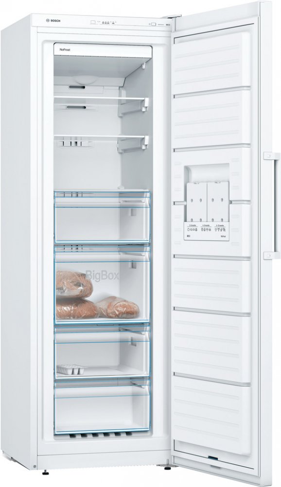 Volně stojící mraznička Bosch Serie | 4 GSN33VWEP je ideálním prostředkem pro ukládání úrody v podobě ovoce, zeleniny, hub i masa. Nabízí velký úložný prostor o objemu 225 litrů, který je rozdělen do 7 oddělení, takže budete mít skvělý přehled, kam jste co uložili. Poličky můžete vyjmout a vytvořit tak více místa pro uložení velkých pokrmů.