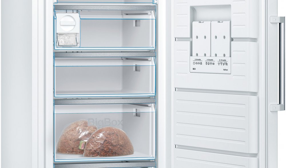 Zásuvka na hluboce zmražené potraviny pro praktické uspořádání již zmražených potravin nebo potravin o velkém objemu, např. dortů nebo pizz. Nezáleží na tom, zda musíte zajistit narozeniny pro své děti nebo zmrazit svatební dort. V zásuvce BigBox najdete dostatek místa pro velké mražené potraviny.