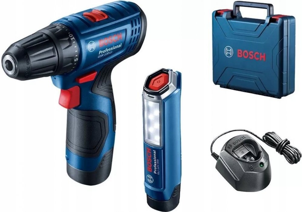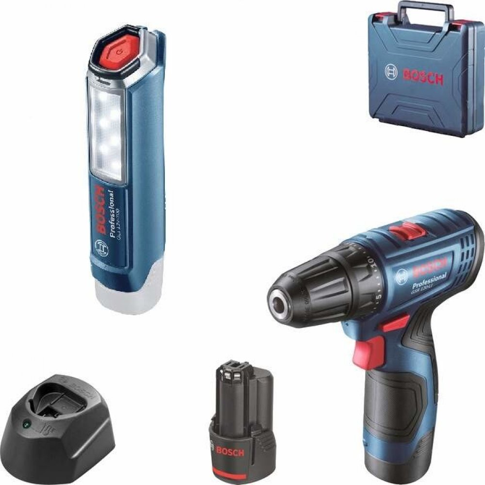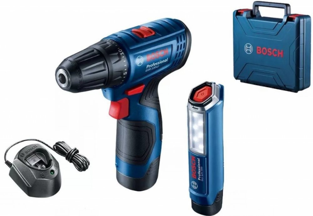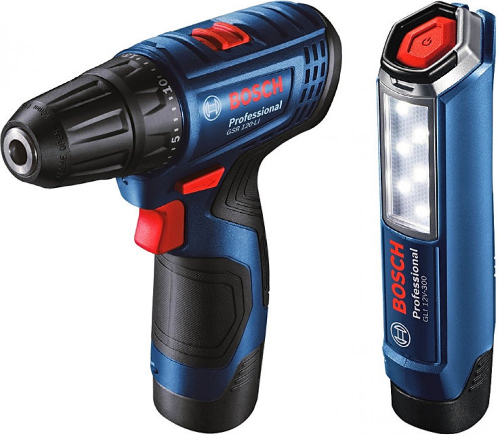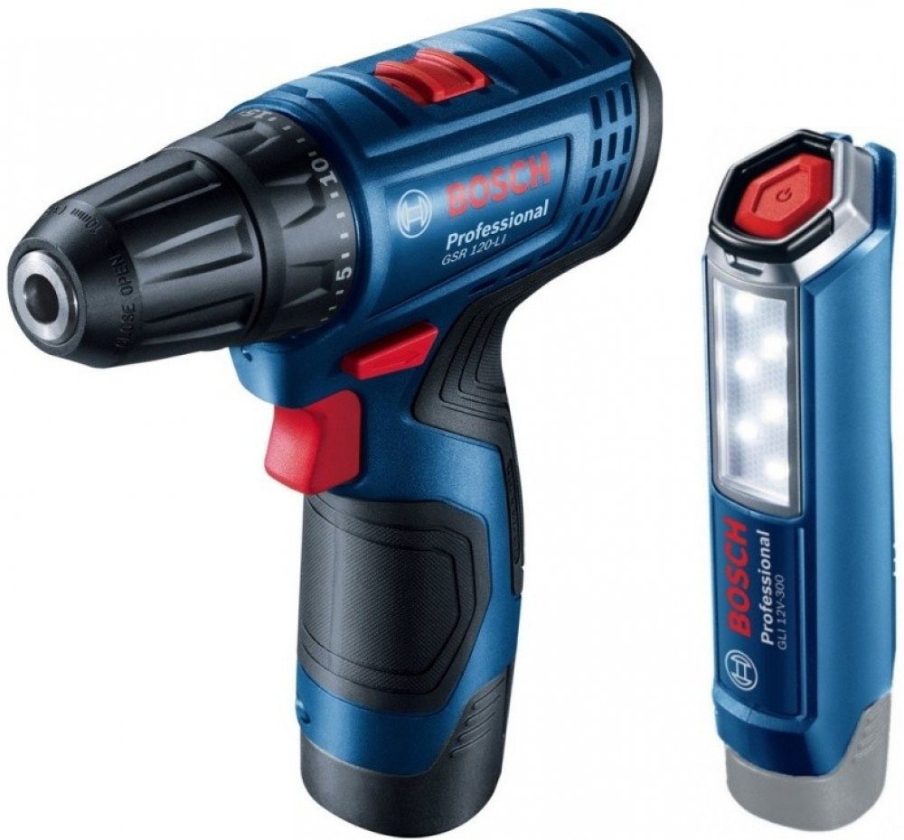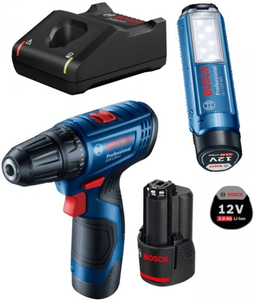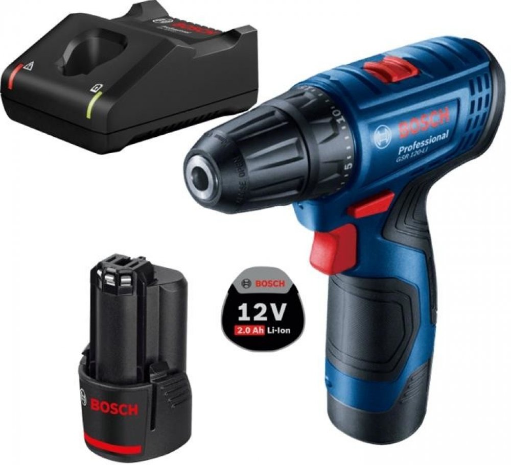 Aku vrtací šroubovák Bosch GSR 120-LI Professional, 2x 2.0Ah, nabíječka, svítilna, 06019G8004