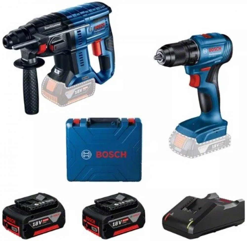 Profesionální sada: aku vrtací kladivo GBH 180-LI a aku vrtací šroubovák/utahovák GSR 185-LI s 2× akumulátor 4,0 Ah a rychlonabíječkou