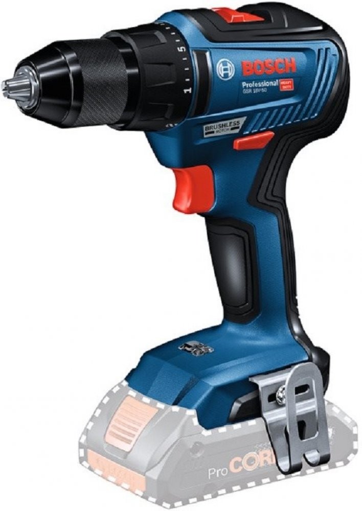 Výkonný akumulátorový vrtací šroubovák GSR 18V-50 nabízí odolnost při náročných úkonech jako vrtání a šroubování do dřeva a kovu. Inteligentní bezuhlíkový motor komunikuje přímo s elektronikou nářadí, a zaručuje tak jeho účinnost a dlouhou životnost. Díky kovovému sklíčidlu vrtacího šroubováku a ergonomické konstrukci je toto nářadí kompaktní a robustní na každodenní používání při náročných úkolech. Je kompatibilní se všemi akumulátory Bosch Professional 18 V (flexibilní systém napájení Flexible Power System) a nabízí pohodlí i při těch nejnáročnějších pracích, a to od začátku až do konce.