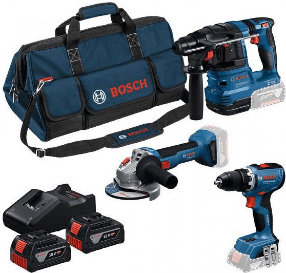 Sada 3 ks 18V nářadí: GSR + GWS + GBH + 3× 4,0Ah + GAL 18V-40 Professional Kombinovaná sadaSada obsahuje:BOSCH GSR 18V-65 Professional Akumulátorový vrtací šroubovákBOSCH GBH 18V-22 Professional Akumulátorové vrtací kladivo s SDS plusBOSCH GWS 18V-8 Professional Akumulátorová úhlová bruska2x BOSCH…
