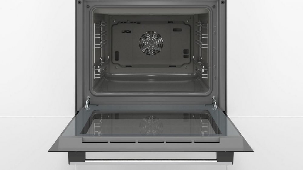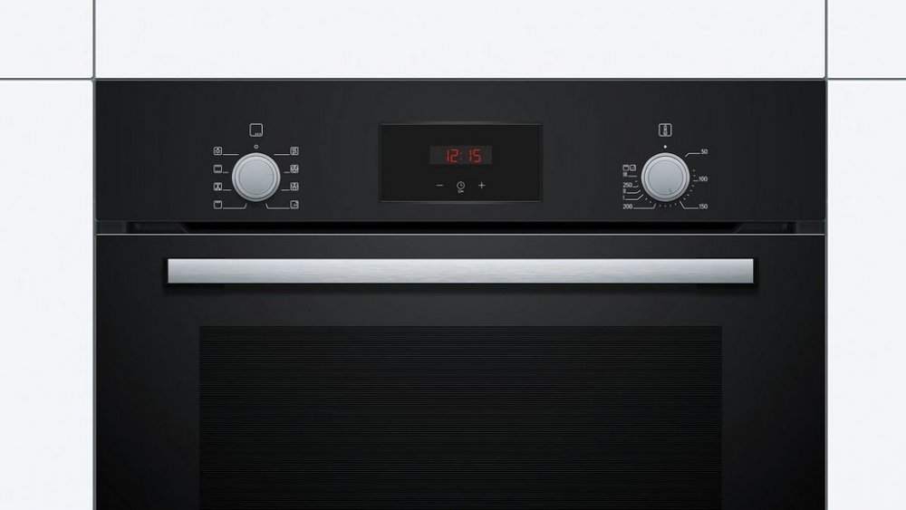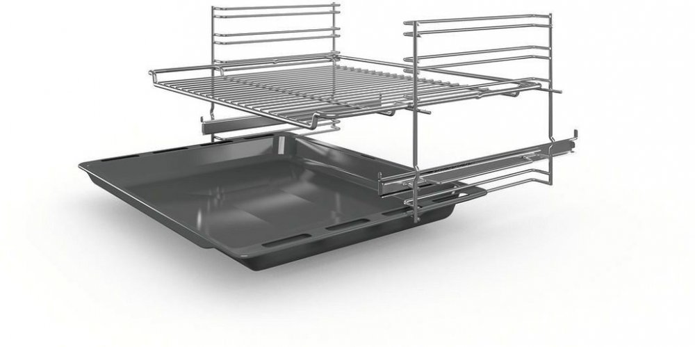 Vestavná trouba, kapacita 66 l, funkce rychlého předehřátí, ecoClean, dětská pojistka, LED displej, zápustné otočné voliče, jednonásobný teleskopický výsuv