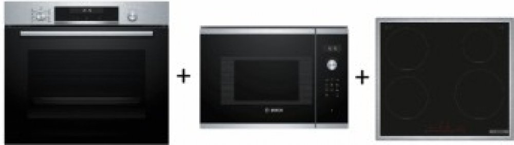 Set spotřebičů Bosch - vestavná horkovzdušná trouba + mikrovlnná trouba + indukční varná deska