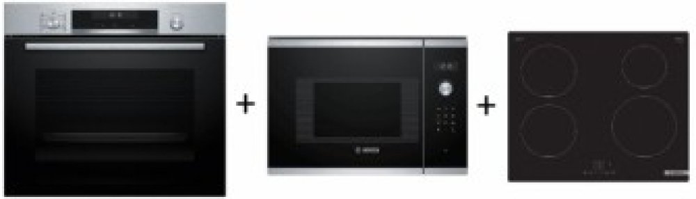 Set spotřebičů Bosch - vestavná pečící trouba + mikrovlnná trouba + indukční varná deska