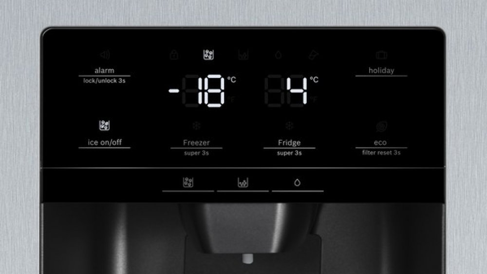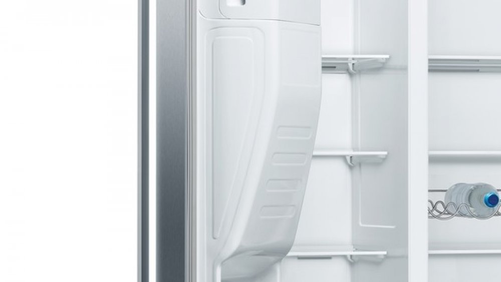 Serie | 6, Americká chladnička side by side, 178.7 x 90.8 cm, Nerez – easyclean KAD93AIEP NoFrost side-by-side kombinace chladnička/mraznička: nabízí moderní displej ve dveřích a šetří odmrazování. XXL velikost: nabízí extra hodně místa pro vaše potraviny – objem 365 l. MultiBox: transparentní zásuvka s vlnitým dnem, ideální pro skladování ovoce a zeleniny. Osvětlení LED : rovnoměrně osvětlí každý kout vašeho spotřebiče a neoslňuje VarioZone: více flexibility díky variabilně umístnitelným skleněným poličkám a přihrádkám v mrazicím prostoru. NoFrost: už nikdy žádné odmrazování. Odpadá ruční a časově náročné odmrazování.