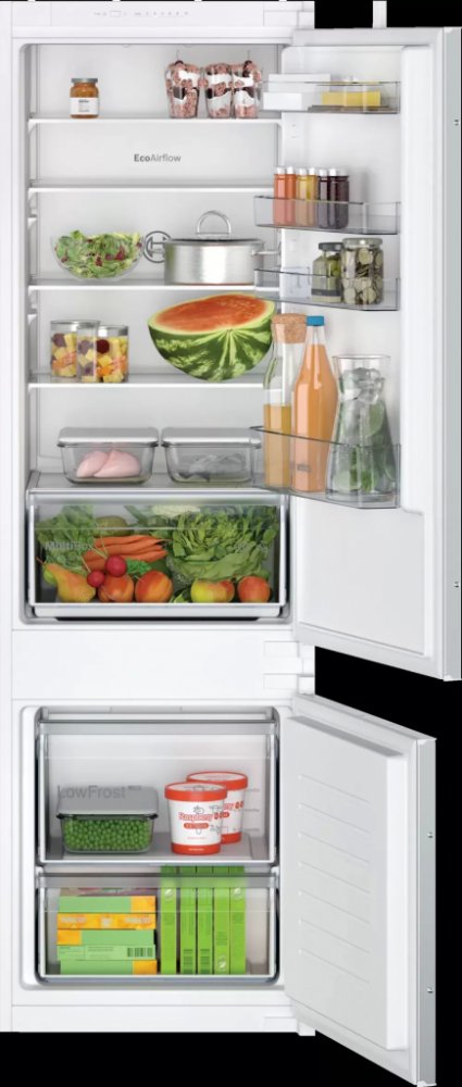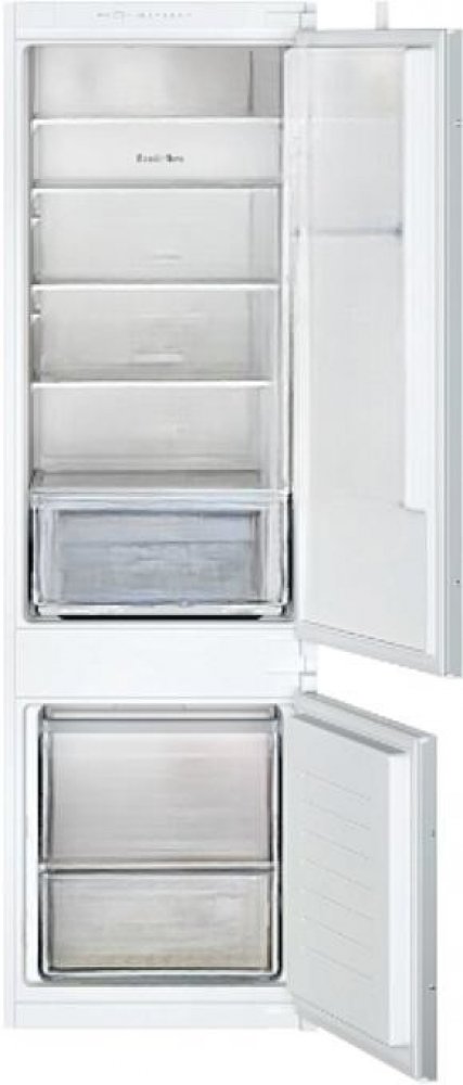 Vestavná lednička BOSCH Serie 2 KIV87NSE0 v bílé barvě s funkcí samoodmrazování spadá do energetické třídy E. Do kombinované lednice s celkovým objemem 270 l budete moct vložit chlazené i mražené potraviny, proto se jedná o populární volbu do běžné domácnosti.