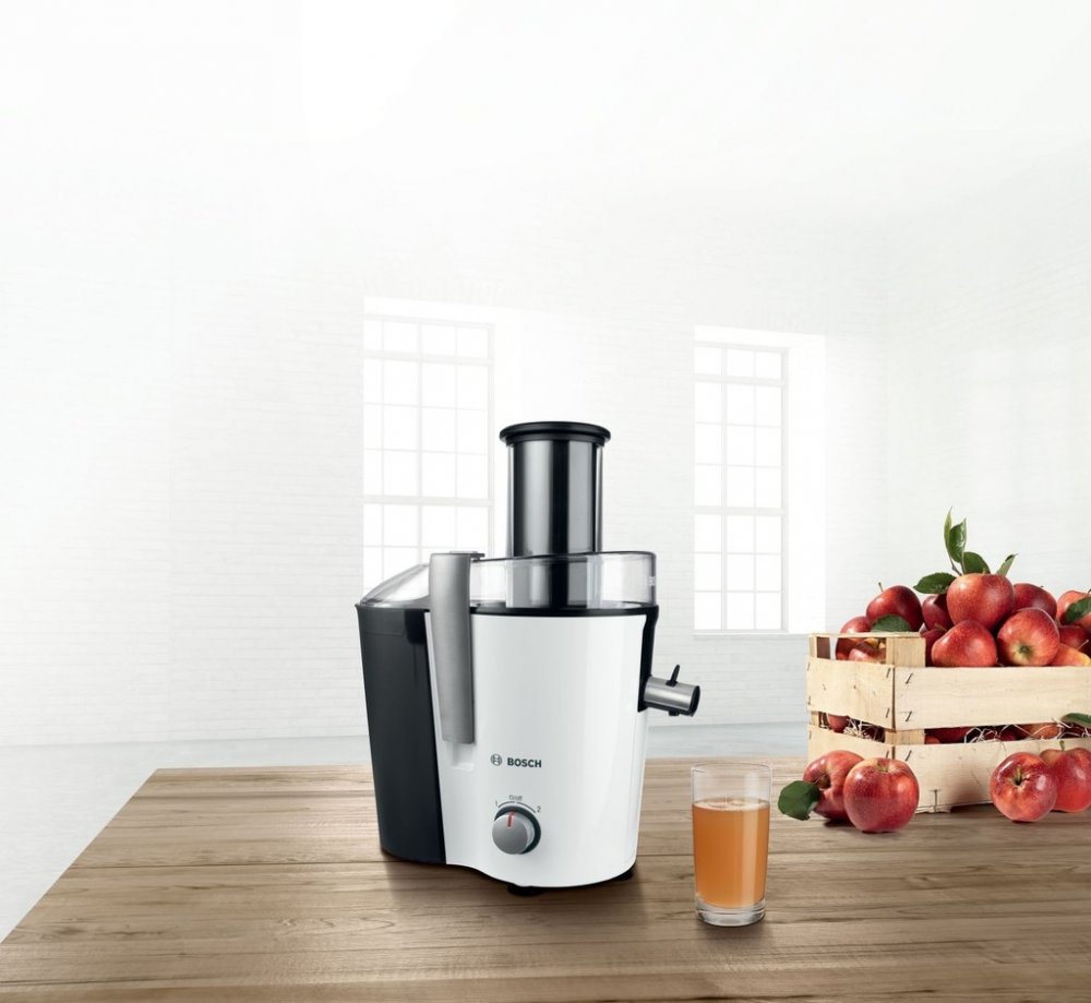 Výkonný odšťavňovač zpracuje celé ovoce bez nutnosti ho předkrájet: rychle, čistě a snadno.