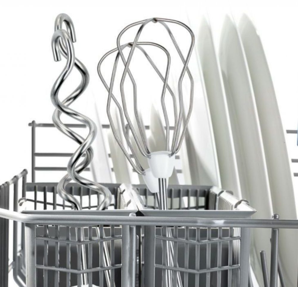 Standardní příslušenství: dva ruční šlehače a dva hnětací háky.