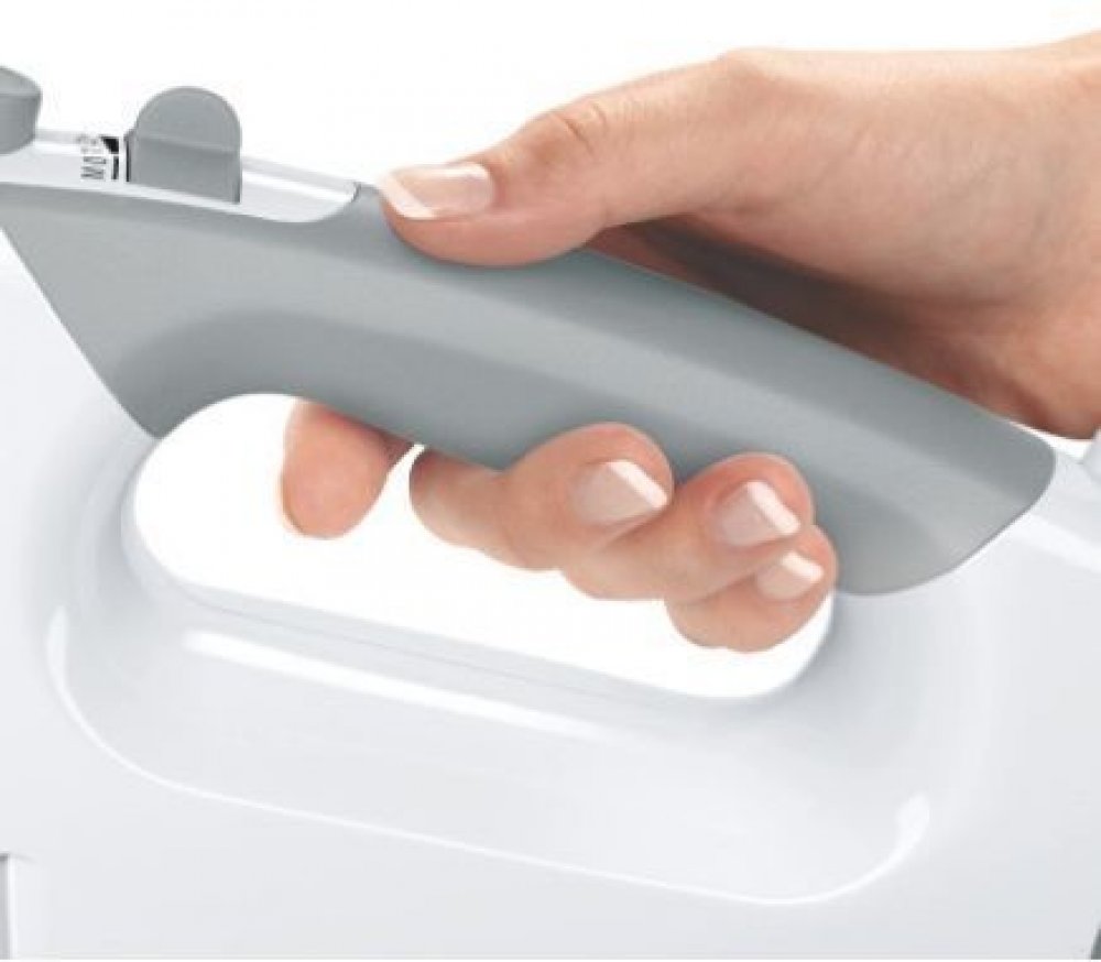 Ruční šlehač Bosch MFQ36400 v kombinaci bílé a šedé barvy o příkonu 450 W. Moderní technika motoru: silný, tichý a lehký. Tento ruční mixér dokonale padne do ruky - s protiskluzovou soft touch povrchovou úpravou.