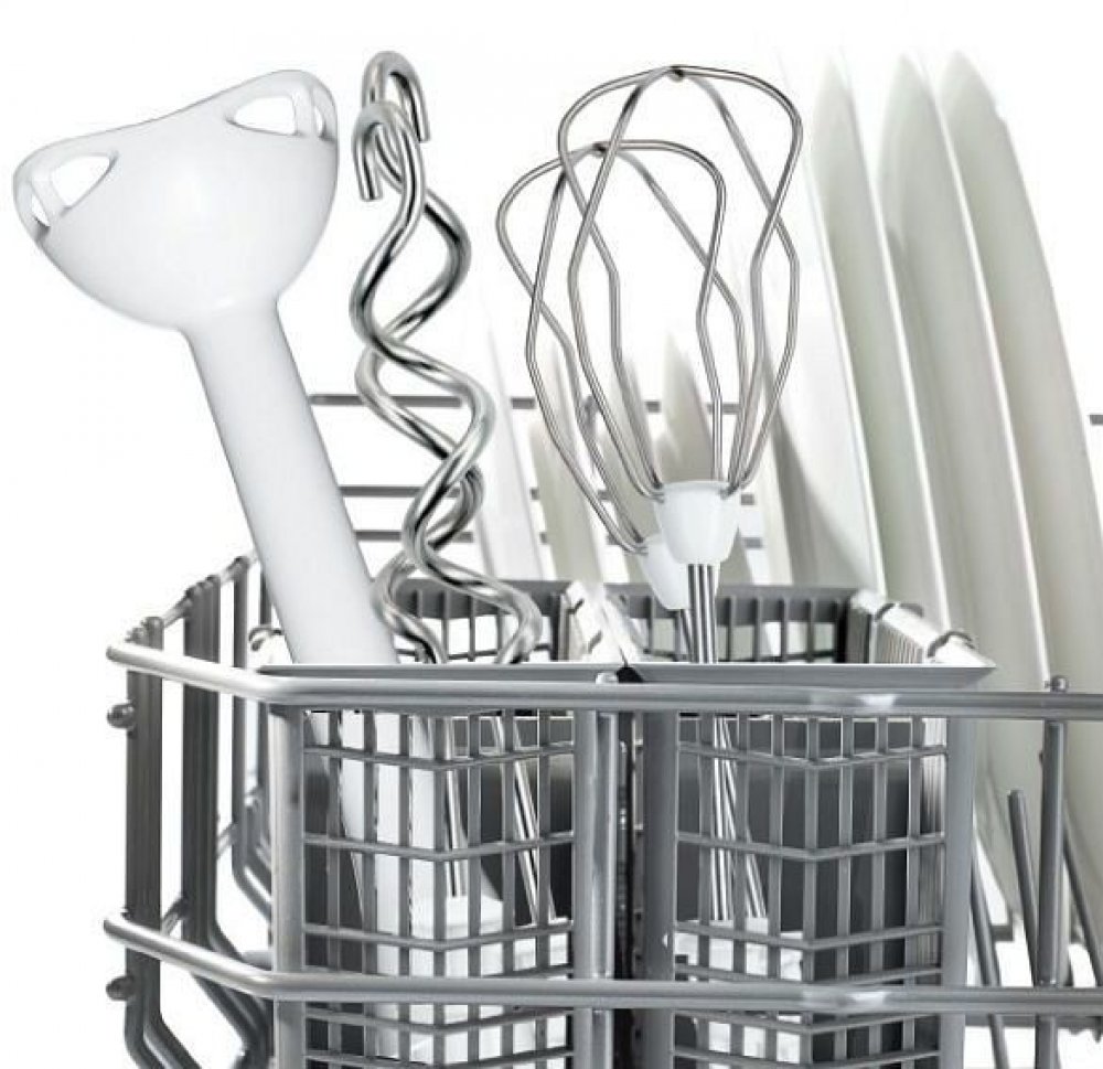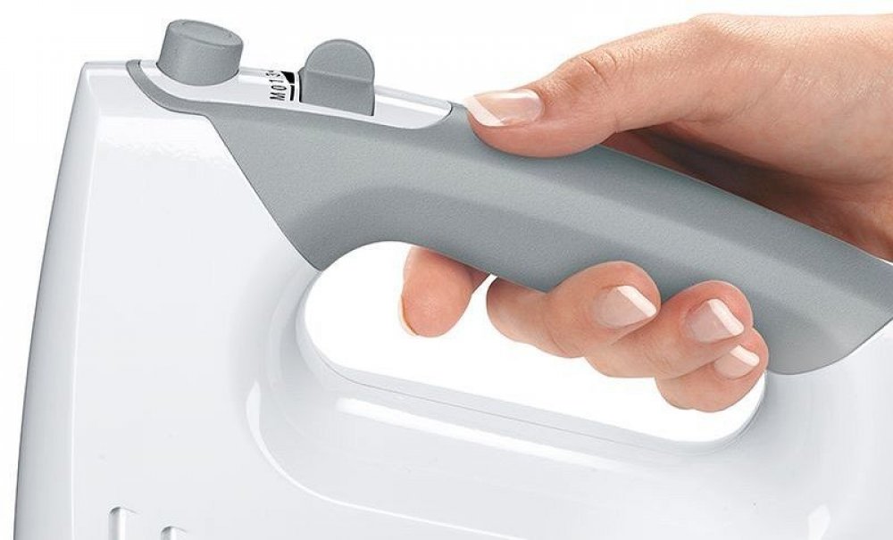 Moderní výkonný šlehač s velmi nízkou hlučností a hmotností vám díky ergonomickému designu a speciálnímu jemnému povrchu rukojeti skvěle padne do ruky, takže se vám s ním bude mnohem lépe pracovat. Disponuje výkonným 450W motorem s 5 rychlostními stupni a také pulsním spínačem s turbo výkonem. Nechybí mu praktické tlačítko pro vysunutí šlehacích a hnětacích metlí a možnost připojení rychlošlehací nohy. Příslušenství lze bez problému omýt v myčce.