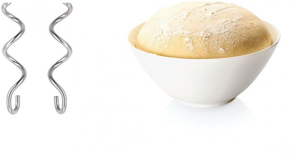 Nerezové hnětací háky: snadno uhnětou i těžší těsta.