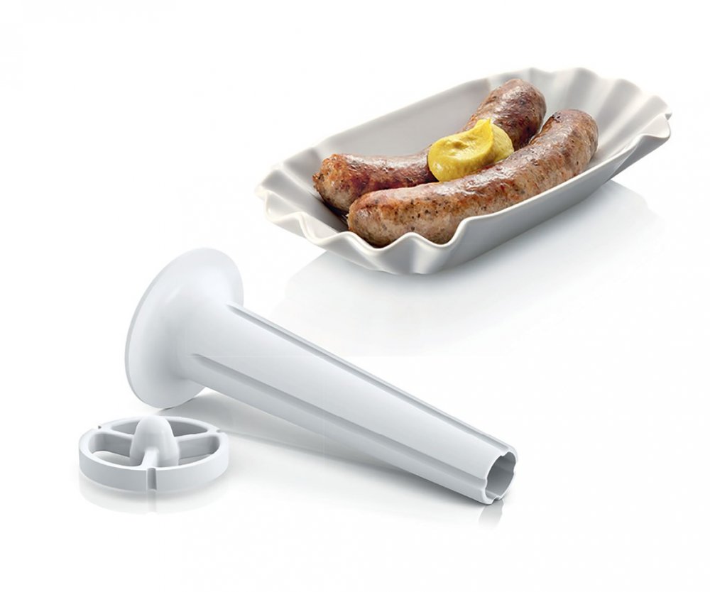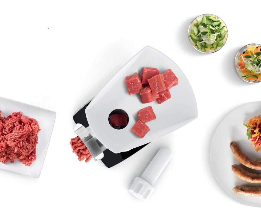 Mlýnek na maso MFW3X14W Velký výkon v kompaktním provedení. Spolehlivý pomocník do každé kuchyně. Silný a účinný motor. Příkon bloku motoru (Motor Block Power) 2000 W zaručuje důkladné zpracování surovin ve velmi krátkém čase. Vysoká funkčnost spotřebiče. S přístrojem můžete nejen sekat maso, ale také krájet zeleninu a ovoce na různé způsoby, strouhat brambory na bramboráky atd. Vysoce kvalitní oboustranný nůž. Díky tomu, že je ostrá z obou stran, má dvojnásobnou životnost a je šetrná k domácímu rozpočtu. Můžete ji tedy používat dvakrát déle než jednostrannou čepel. Funkce REVERS umožňuje obrátit směr mletí, pokud přístroj zablokují například vláknité kusy masa. To výrazně zvyšuje bezpečnost provozu a šetří čas potřebný k odšroubování mlecí komory a odstranění zablokovaných kusů potravin Promyšlený design, praktická rukojeť pro snadné přenášení a pohodlné uložení sítka a kabelu. .