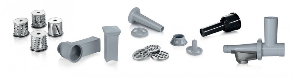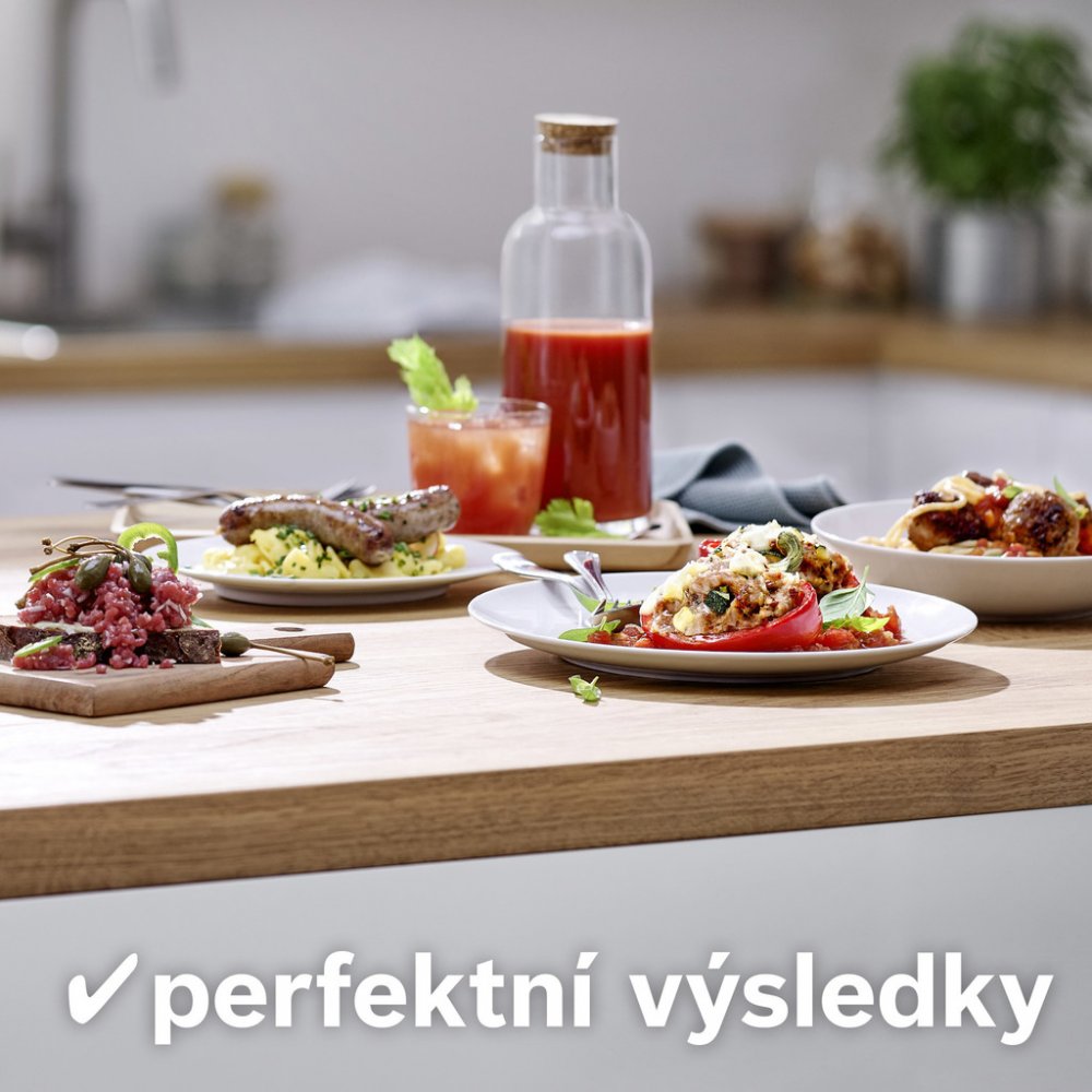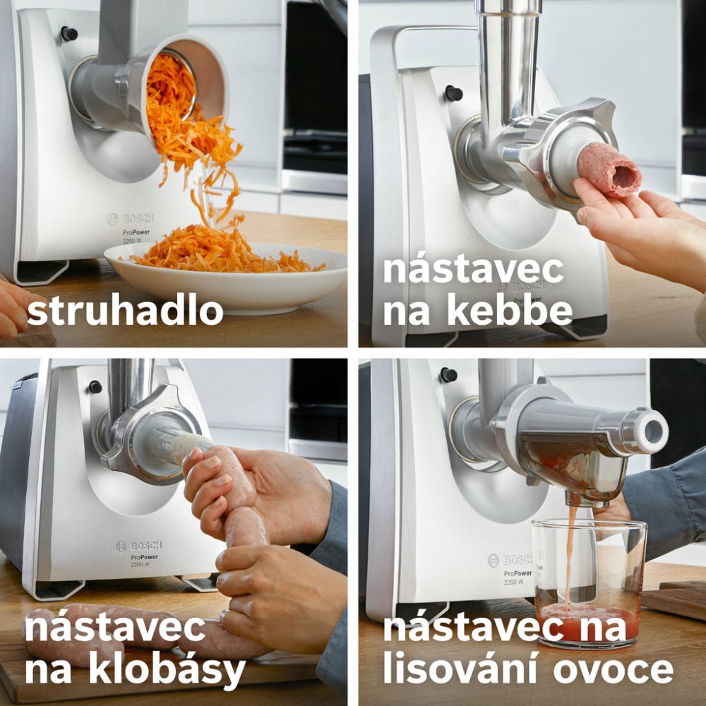 Různé funkce: mletí masa a ryb, strouhání zeleniny nebo lisování ovoce a zeleniny.