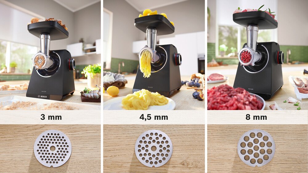 Pokud je vaření vaším hobby, neměli byste postrádat spolehlivého pomocníka, kterým je mlýnek na maso. Nadčasový elektrický mlýnek na maso Bosch je na rozdíl od toho klasického mnohem rychlejší. Navíc vám jeho instalace nezabere mnoho času. Rychlost mletí je možné podle potřeby přizpůsobit za pomoci 2 stupňů rychlosti. Rychlost zpracování masa činí 2,5 kg/min. Výrobek není omezen pouze mletím masa....