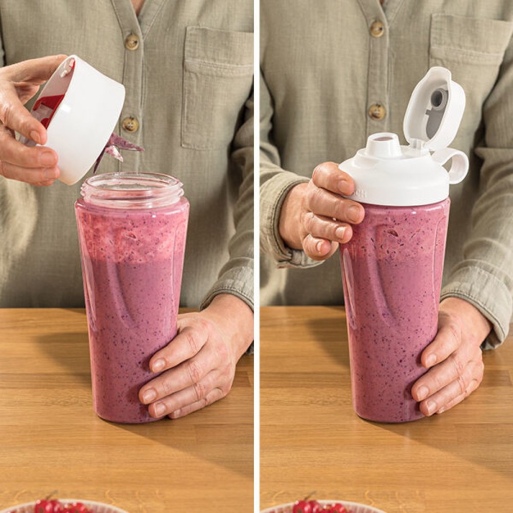 Mixování přímo v 2Go láhvi bez zbytečného přelévání. Snadná manipulace díky ergonomickému tvaru a uzávěru s ochranou proti vytečení.