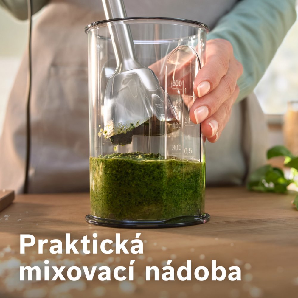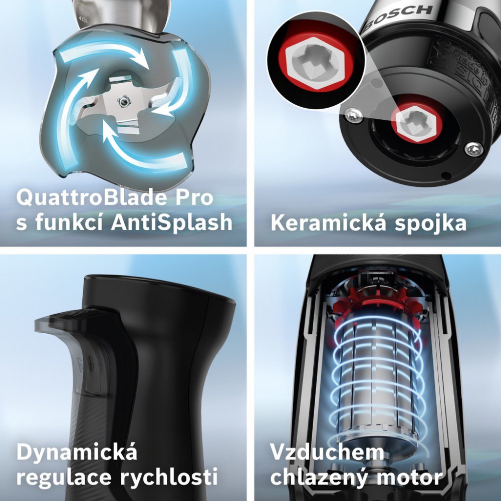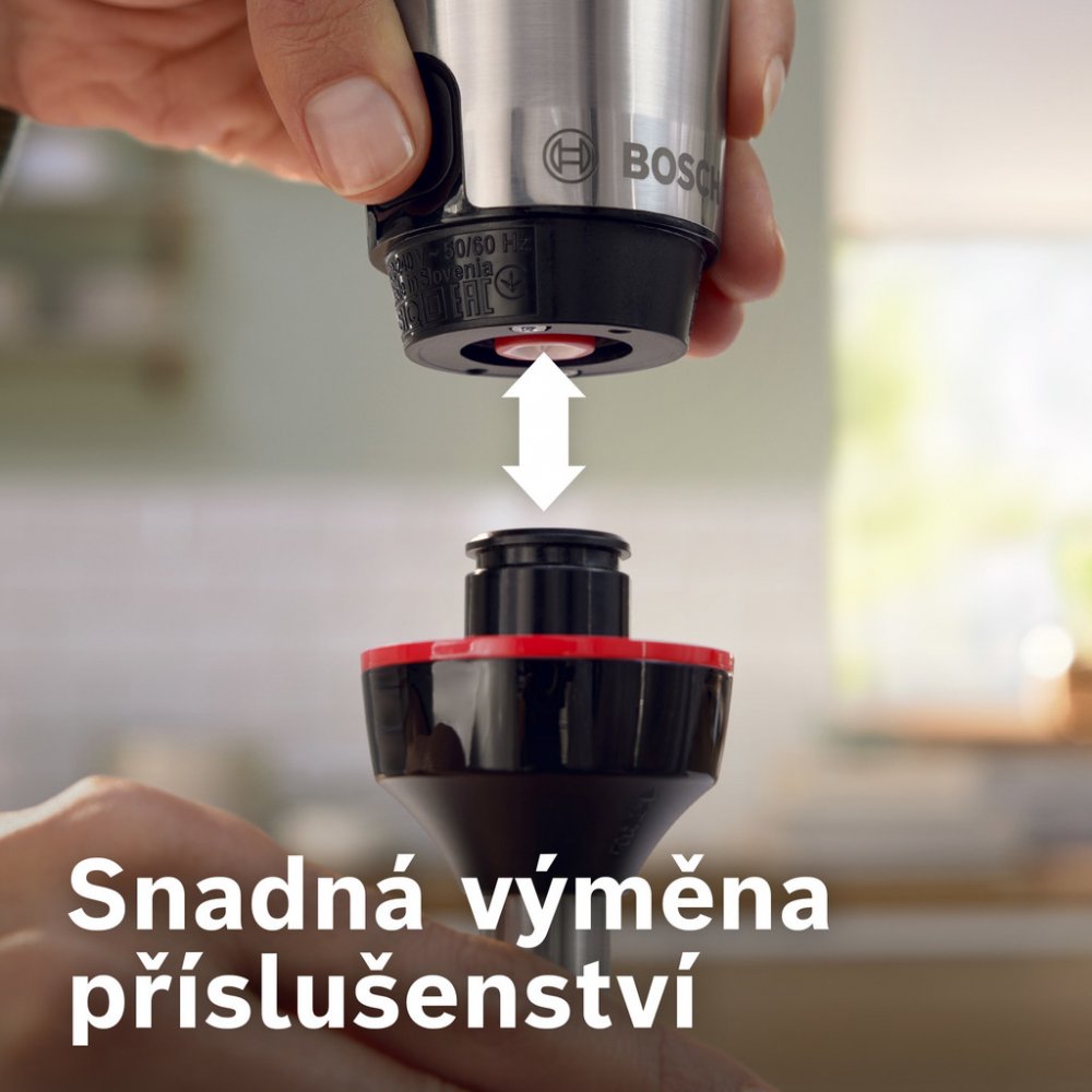 Tyčový mixér BOSCH ErgoMaster MSM6M610 Vzduchové chlazení Dynamická regulace rychlosti Pákové ovládání jednou rukou QuattroBlade mixovací nerezová noha Bezpečnostní pojistka Keramická spojka s dlouhou životností Ergonomická rukojeť Snadné čištění Příkon 1 000 W Napětí 220 - 240 V Frekvence 50/60 Hz Délka přívodního kabelu 1,4 m Rozměry 395 x 60 x 78 mm Hmotnost 1,1 kg Barva černá / nerez / červená