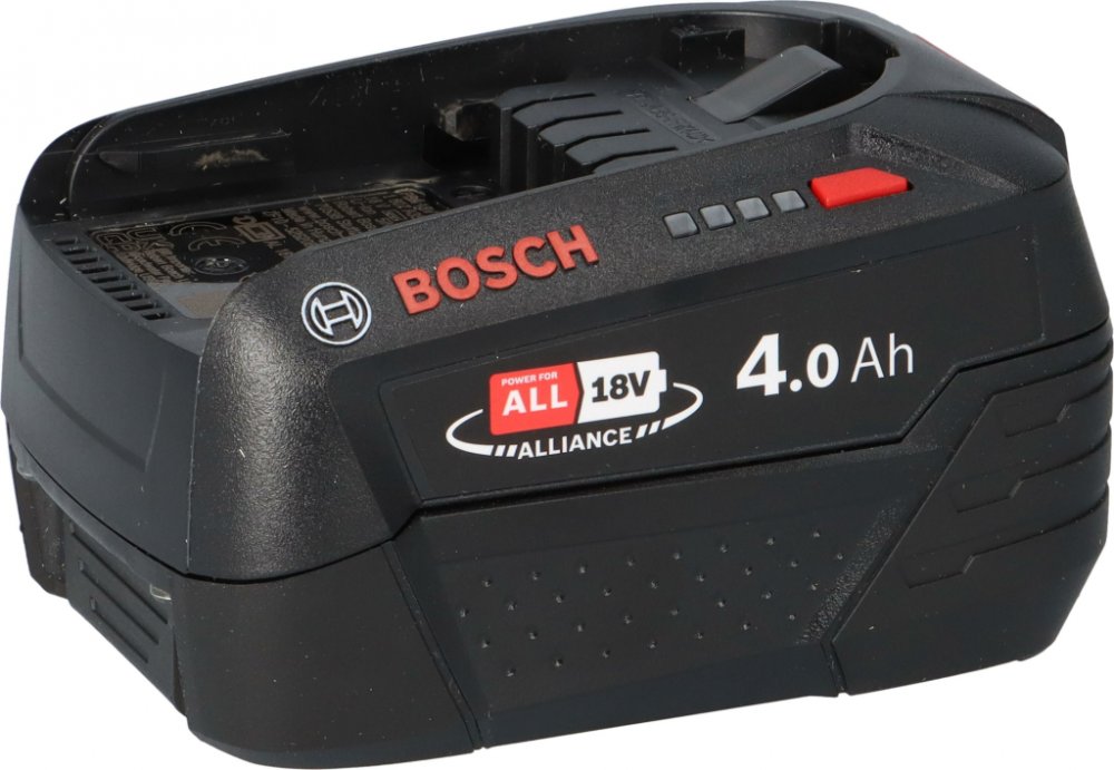 - Bez paměťového efektu, bez samovybíjení a stále připravené k použití díky lithium-iontové technologii. Mimořádně dlouhá životnost díky elektronické ochraně článků Bosch (ECP)