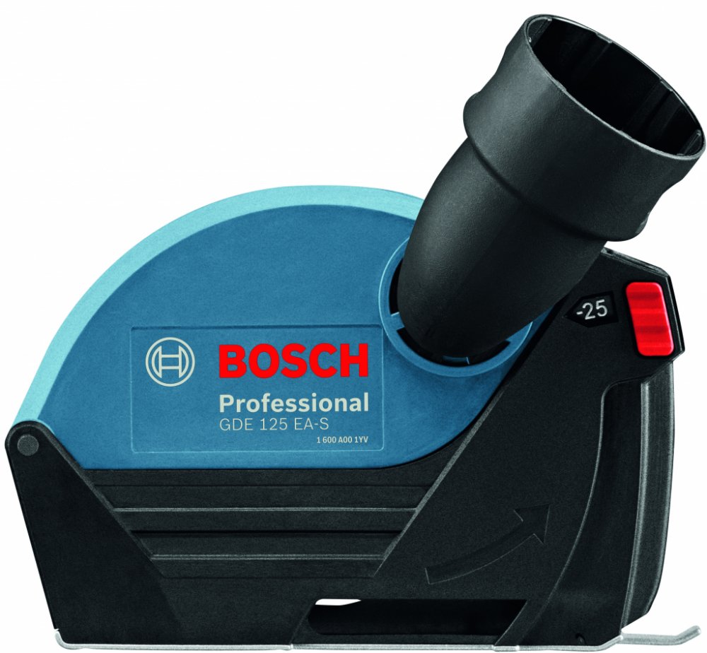 Systémové příslušenství GDE 125 EA-S (odsávací kryt) Systémové příslušenství GDE 125 EA-S (odsávací kryt), Téměř bezprašné řezání kamene s malými úhlovými bruskami, Pro čistou práci: již téměř žádné čištění po práci, Jednoduchá manipulace: pohodlné připojení k úhlové brusce a vysavači, Funguje s mnoha úhlovými bruskami Bosch o průměru 125 mm, Přesná práce díky praktickému nastavení hloubky řezu, Nízká hmotnost pro práci bez únavy, Perfektně přizpůsobené pro systém Bosch Click & Clean