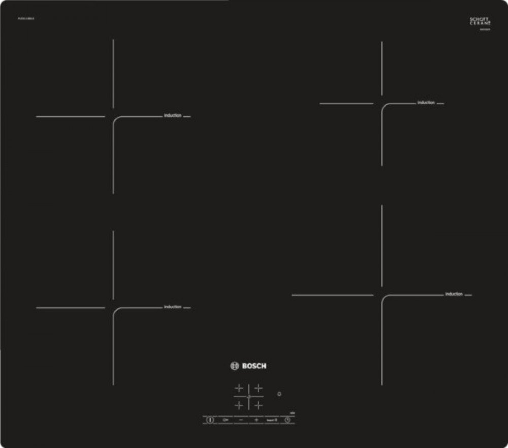 Bosch sklokeramické 10.9 kg 4 indukční dotykové černá 3700 W 220 - 240 V 50 / 60 Hz 5.1 x 59.2 x 52.2 cm 59.2 cm 52.2 cm 1.1 m