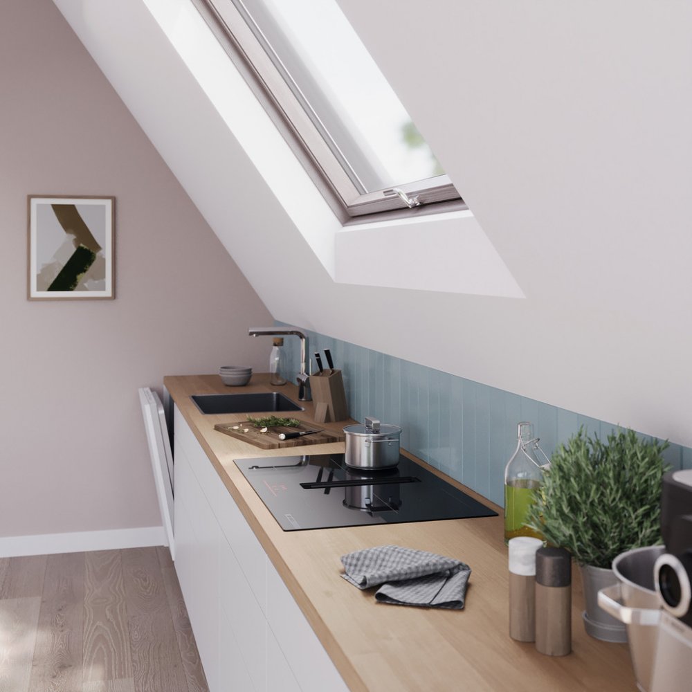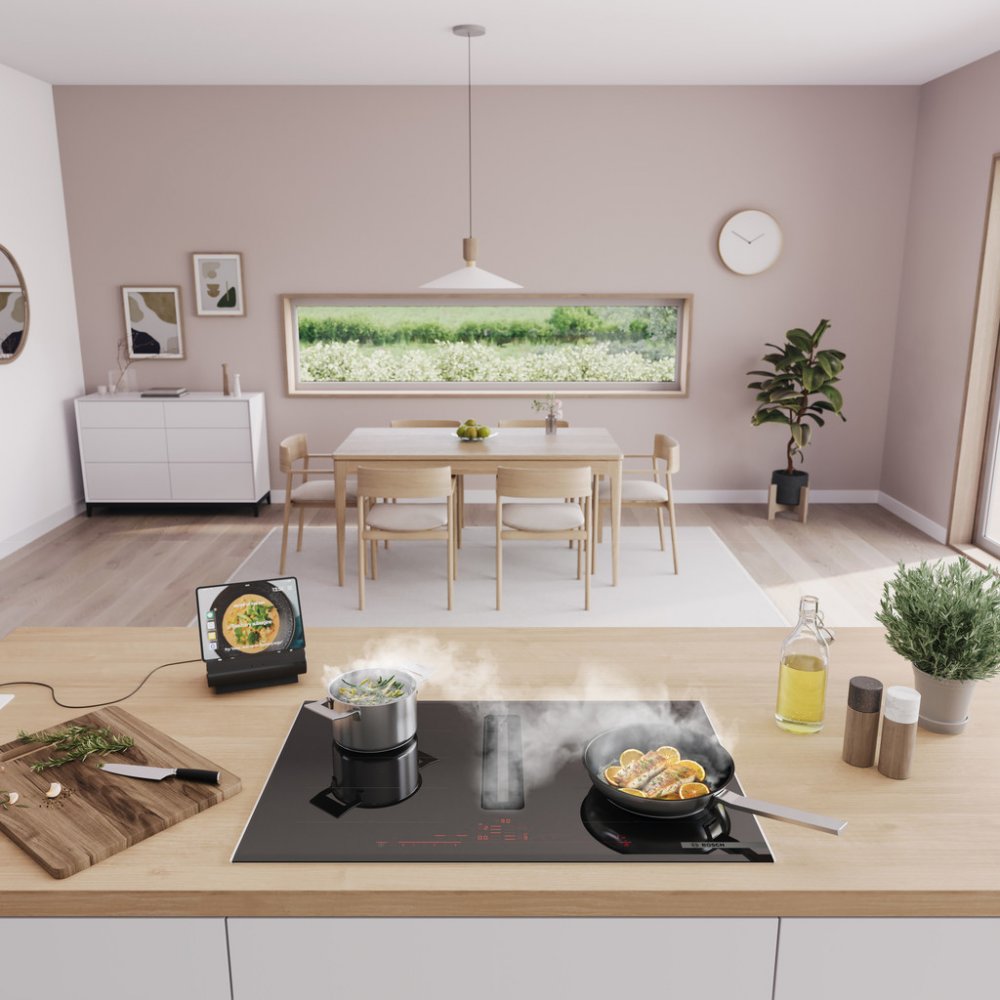 Indukční varná deska s plně integrovaným vysoce výkonným systémem odvětrání par.
