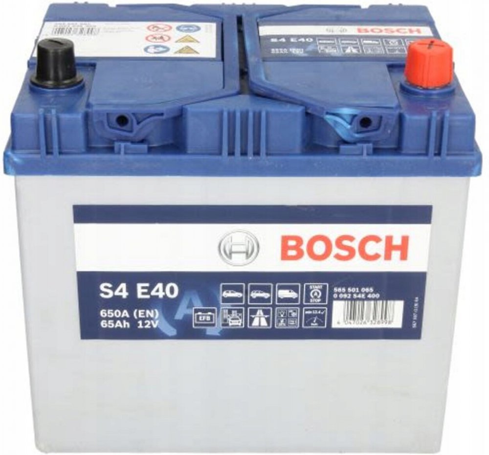 Autobaterie BOSCH S4, 12V, 65Ah, 650A, 0 092 S4E 400Autobaterie řady Bosch S4 je vhodná pro automobily nižší a střední třídy s větším množstvím palubních spotřebičů, které kladou větší nároky na napájecí soustavu. Tato řada pokrývá většinu potřeb běžných automobilů. Je vhodná také do asijských vozů.Autobaterie je zcela bezúdržbová, rovněž zaručuje vyšší bezpečnost, technologii Power Frame, nabízí o 15% vyšší startovací proud proti běžným bateriím, až o 20% vyšší životnost díky inovacím v použitých slitinách stříbra. Výhody baterií Bosch 100% bezúdržbovábezproblémové zabudováníbezpečný studený startinovační slitina stříbrao 20% zvýšená životnostbezpečné konstantní napájení palubní sítěrobustní design díky velkému objemu kyseliny a širším deskámžádná manipulace s kyselinou, akumulátor je připraven k zabudování a startuPolarita: pravá