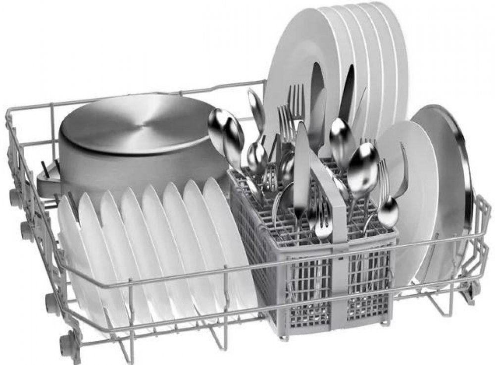- Výškově nastavitelný horní koš: nabízí extra místo, zvláště pro vysoké nádobí.