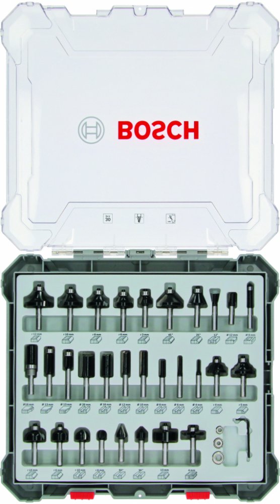 BOSCH Smíšená sada tvarových fréz s vřetenem 6 mm, 30 ks 2607017474