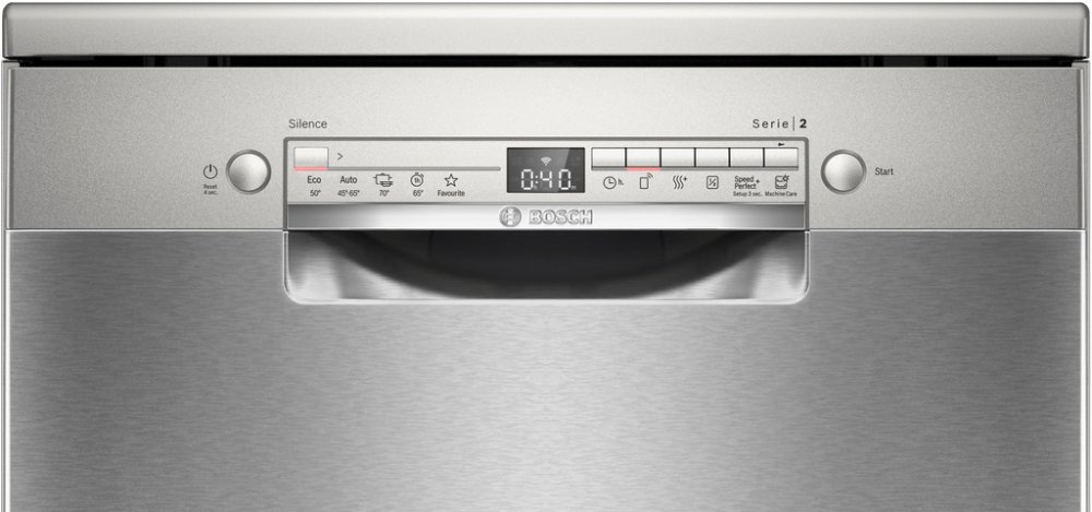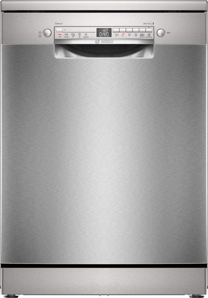Myčky BOSCHMyčka BOSCH SMS2HTI08E Serie 2Volně stojící myčka nádobí Bosch SMS2HTI08E, Serie 2 nabízí spolehlivé mytí s praktickými programy a chytrými funkcemi. Díky připojení Home Connect ji můžete ovládat a hlídat na dálku, využít Oblíbený program na jedno stisknutí a v případě potřeby aktivovat ExtraDry pro důkladnější sušení. Povrch v provedení broušená ocel s úpravou AntiFingerprint účinně omezuje viditelné otisky prstů, zatímco EcoSilence Drive zajišťuje tichý a úsporný provoz.Efektivní využití vodyProplachovací technologie maximalizující účinnost a ekologické oplachování pro nejlepší výsledky mytí.Extrémně tichý chodVysoký výkon mytí při nízké hlučnosti. Motor EcoSilence Drive šetří energii a snižuje hluk.Automatický výběr teplotyProgram šetří vodu i energii. Podle míry zašpinění nádobí si myčka sama určí množství vody, její teplotu a dobu oplachování.Přerušení vody při porušeOchrana proti úniku vody pomocí speciálních senzorů. V případě detekce úniku vody se myčka sama zastaví a odčerpá vodu...
