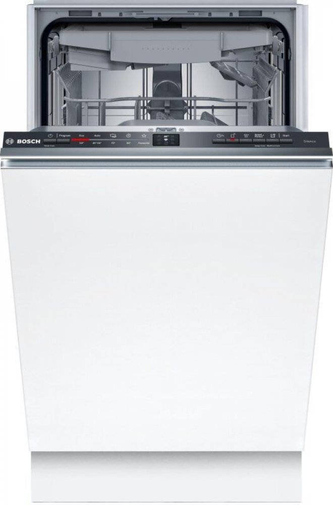 Vestavná myčka nádobí BOSCH SPV2HMX42E o šířce 44.8 cm, objemu pro 10 sad nádobí, v energetické třídě E. Přídavná funkce Sušení Extra podporuje důkladné sušení těžko schnoucího nádobí. InfoLight: červené světlo promítané na podlahu před myčkou informující o probíhajícím provozu spotřebiče. Šuplík Vario3 je ideálním místem pro vaše příbory, kuchyňské náčiní a lehké předměty. Vzdálený přístup a ovládání zařízení, které vám usnadní každý den. Ticho na vyžádání : režim ztlumení snižuje hluk na max. 30 minut za aplikace Home Connect .