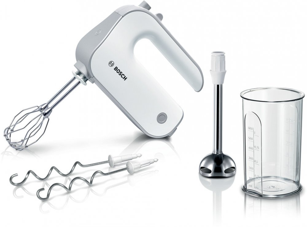Ruční šlehač BOSCH MFQ4070. Ruční šlehač Bosch MFQ 4070 v bílo šedém provedení. Je to silný, tichý a lehký šlehač. Ruční šlehač Bosch MFQ4030 s pěti rychlostními stupni s odlišným počtem otáček. Separátně umístěné tlačítko slouží pro vysunutí šlehacích a hnětacích metel. 2 vysoce výkonné turbometly pro optimální výsledky šlehání a míchání. Součástí ručního šlehače Bosch MFQ4070 je 1x víko, 1x odmě...
