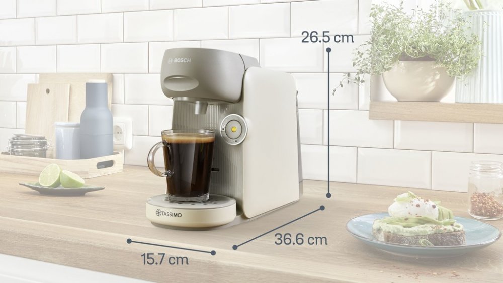 Bosch dotykové Tassimo 0.7 l 3.3 bar vícebarevné 7 4-7 šálků bez mléčného systému lehčí káva průtokový ohřívač různé 1400 W A 15.7 x 36.6 x 26.5 cm 2.6 kg s odnímatelnými díly