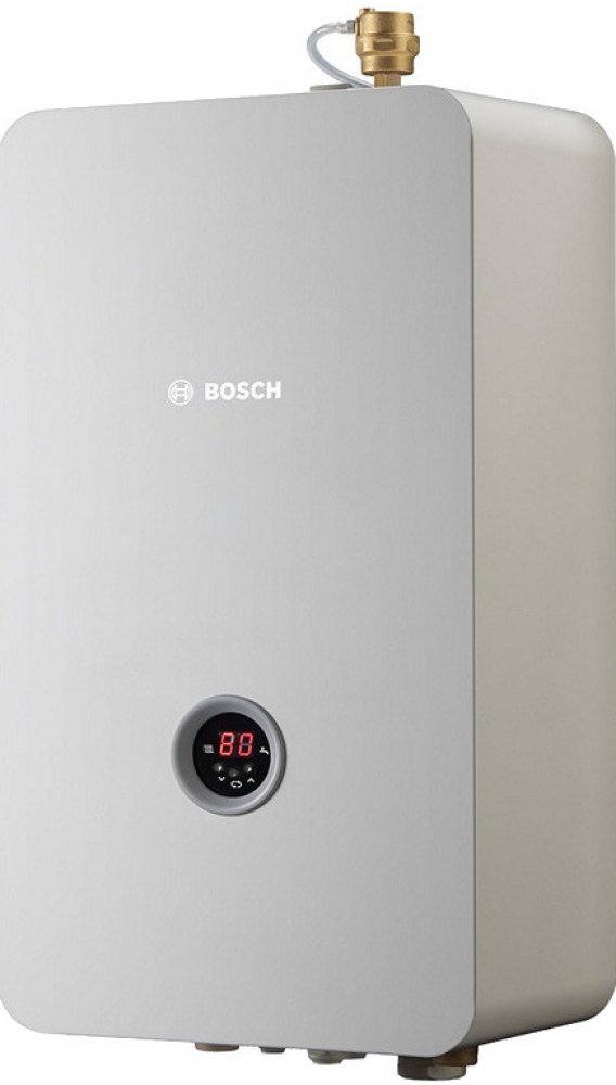 Elektrický teplovodní kotel Bosch. Tento nový výrobek zaujme především špičkovou adaptivní regulací, která přesně upravuje parametry kotle tak, aby byl zajištěn maximální komfort vytápění s důrazem na minimální spotřebu energie. Tento kotel je určen jako hlavní zdroj energie, obsahuje všechny potřebné komponenty jako je čerpadlo expanzní nádobu, pojistné ventily a regulaci.
