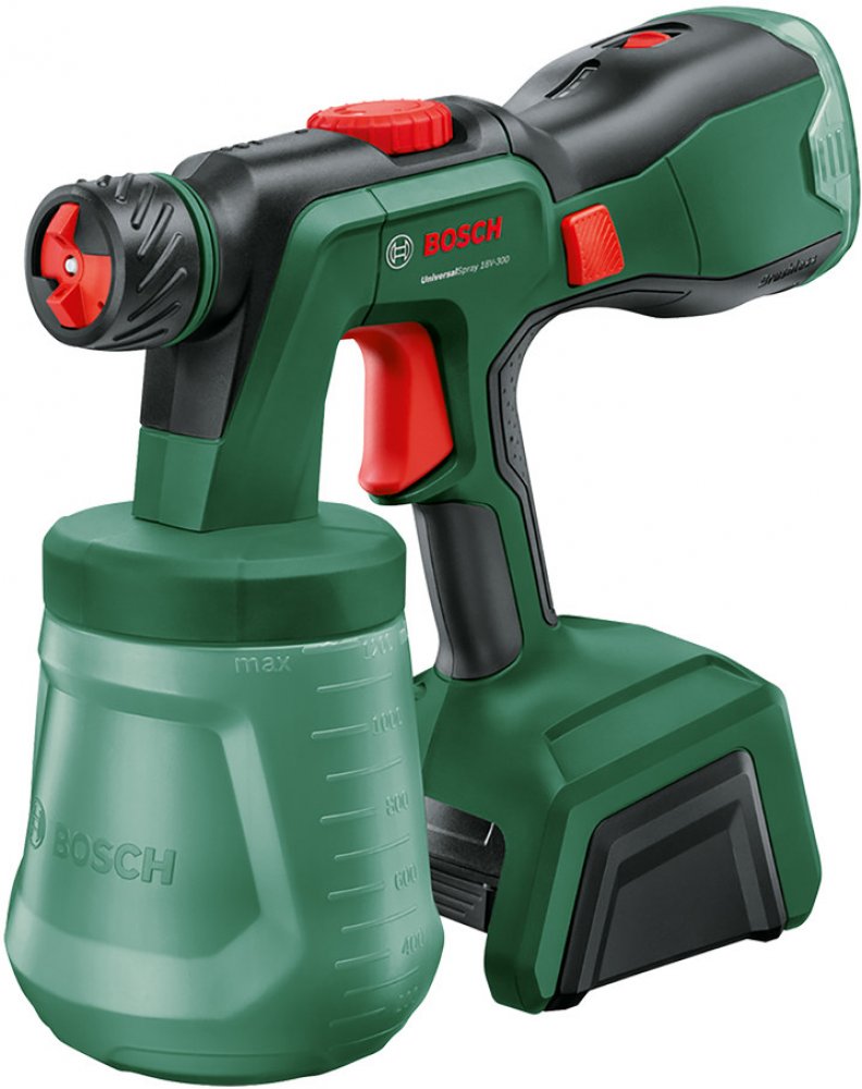 Aku stříkací pistole Bosch umožňuje neomezený pohyb při používání a poskytuje objem 0,8 l. Je ideální na malířské barvy. Vzhledem k nízké hmotnosti, která je 1,7 kg, umožňuje komfortní práci bez výrazného zatěžování rukou. V průběhu jedné minuty pokryje plochu o velikosti 1 m²/min. Součástí balení je také nádobka, která slouží jako zásobník materiálu. Klíčové vlastnosti produktu BOSCH UniversalSpray 18V-300 (bez aku) 0.603.208.100 Aku stříkací pistole Bosch o objemu 0,8 l Je vhodná na malířské barvy Nanáší materiál rychlostí 1 m²/min. Její nízká hmotnost 1,7 kg umožňuje pohodlné ovládání V balení se nachází také nádobka