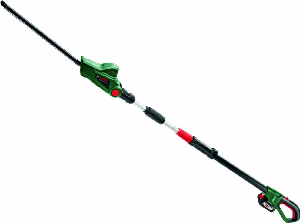 UniversalHedgePole 18 se perfektně hodí na stříhání vysokých živých plotů. Vyznačuje se teleskopickou tyčí s nastavitelnou výškou a otočnou hlavou pro snadný dosah bez žebříku až 2,6 m. Antiblokovací systém Bosch zajišťuje výkonné a nepřetržité řezání. Nízká hmotnost (3,6 kg) a optimální vyvážení zaručují pohodlné ovládání. Výkonný 18V lithium-iontový akumulátor dodává energii pro až 2,5 hodiny nepřetržité práce bez rizika přeříznutí napájecího kabelu. Toto nářadí patří do POWER FOR ALL ALLIANCE. Jeden akumulátor může pohánět širokou škálu nářadí různých značek.