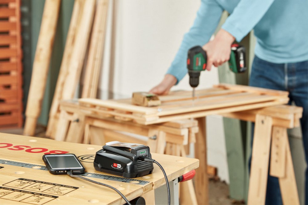 Adaptér Bosch UniversalUSB 18V-45 Zajistěte si napájení kdekoli: Přenosný adaptér USB s powerbankou pro rychlé nabíjení více zařízení. Všestranný 18V akumulátorový adaptér s funkcí powerbanky Výstupy USB-C® a USB-A poskytují dohromady až 5 V / 3 A + 5 V / 1,5 A Vestavěný indikátor stavu informuje o zbývajícím výkonu Kompaktní design s praktickou kovovou sponou pro snadné připevnění k oděvu POWER FOR ALL: Jeden akumulátor a jedna nabíječka pro kompletní systém nářadí Home & Garden