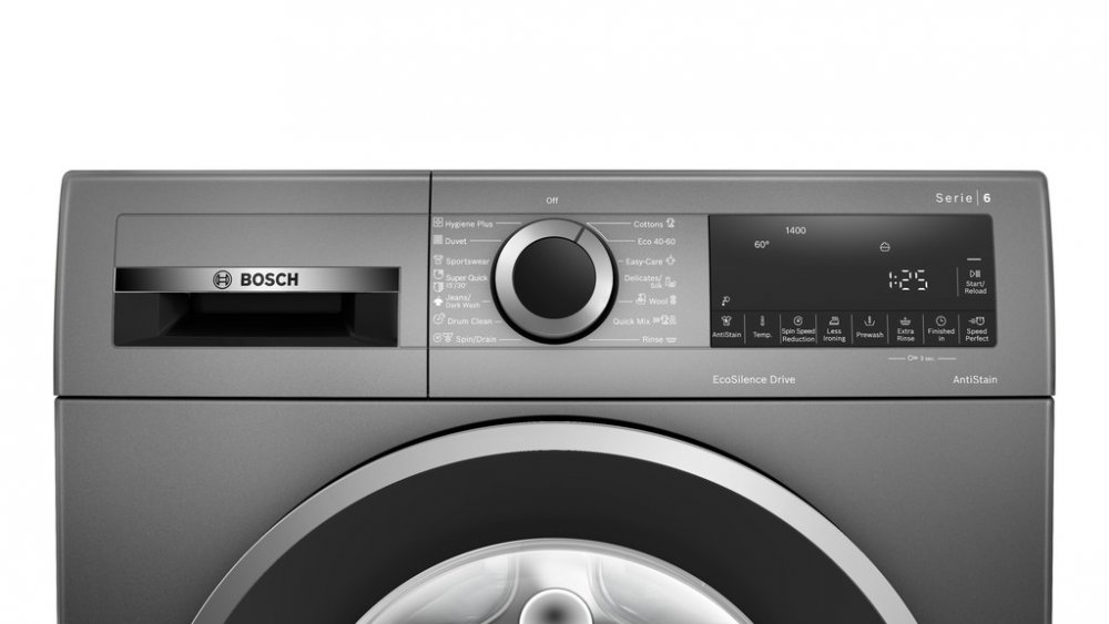 Bosch 9 kg 51 dB 71 dB přední volně stojící stříbrné 1400 ot./min levé A B 48 l A 9 kg 59 cm 59.8 cm 65 l 84.8 cm 73.5 kg 1.6 m 14