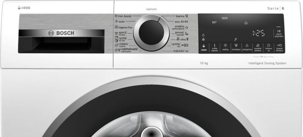 Pračka s předním plněním, kapacita 10 kg, 1600 ot/min, energetická třída A, hlučnost 74 dB, i-DOS, Iron Assist, Active Water Plus, Speed Perfect, TouchControl tlačítka, Anti Stain systém, funkce Reload