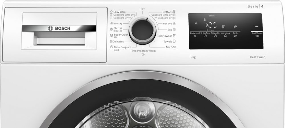Bosch volně stojící kondenzační 8 kg C volně stojící pro 3–4 osoby 62 dB 119 kWh 119 kWh C B 205 min D otočný knoflík s dotykovým ovládáním 84.2 cm 59.8 cm 61.3 cm 48.5 kg 8