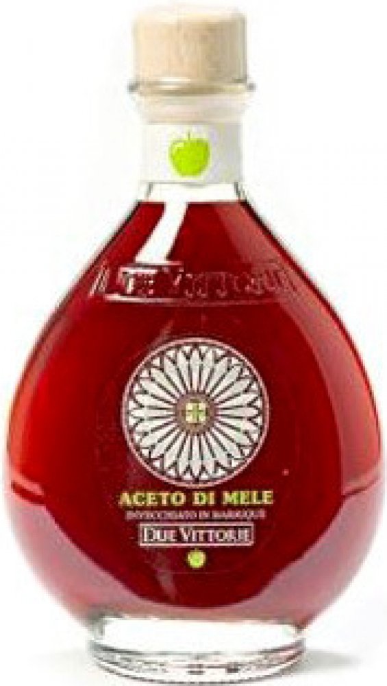 Jablečný ocet Due Vittorie se vyrábí tradiční metodou pomalé fermentace vysoce kvalitní čerstvé jablečné šťávy. Zraje minimálně 1 rok v dubových soudcích. Díky tomu má plnou chuť s charakteristickými jablečnými tóny. Při vaření chuť pokrmu nepřekrývá, ale podtrhuje. Přitom si zachovává svou charakteristickou vůni a chuť. Ve studené kuchyni nachází využití zejména na saláty a se sýry.