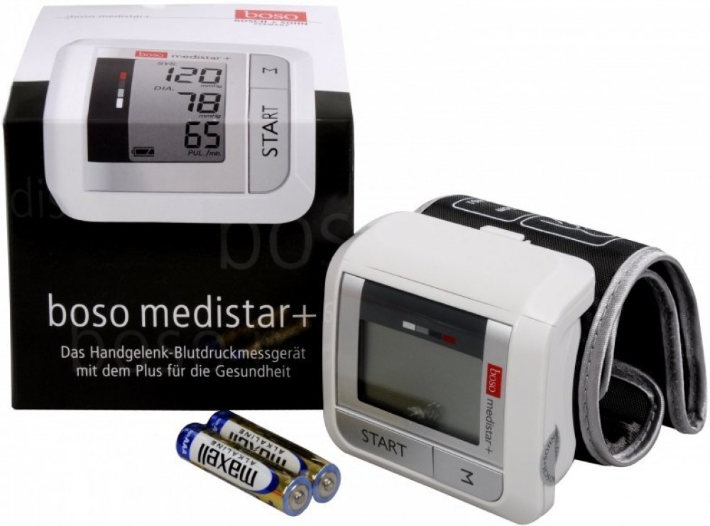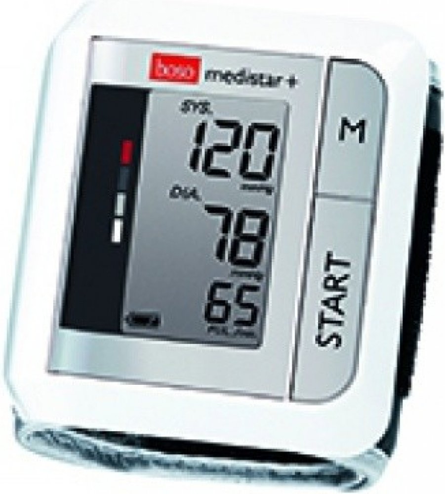 Elektronický přístroj určený k měření krevního tlaku na zápěstí. Tlakoměr Boso Medistar + získal v roce 2016 druhé místo v testu německé spotřebitelské nadace Stiftung Warentest v kategorii měřičů tlaku na zápěstí. Tonometr Boso Medistar + je malý, skladný, vhodný na cesty. Součástí je plastové transportní pouzdro. Prodloužená záruka.