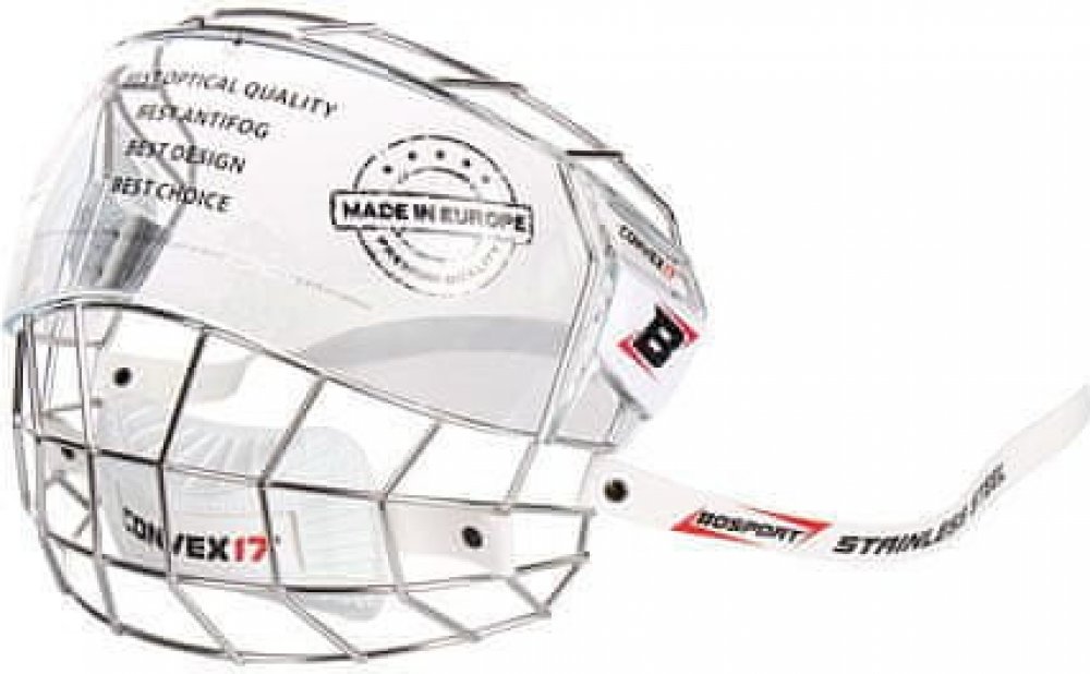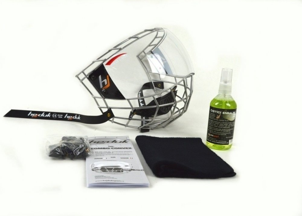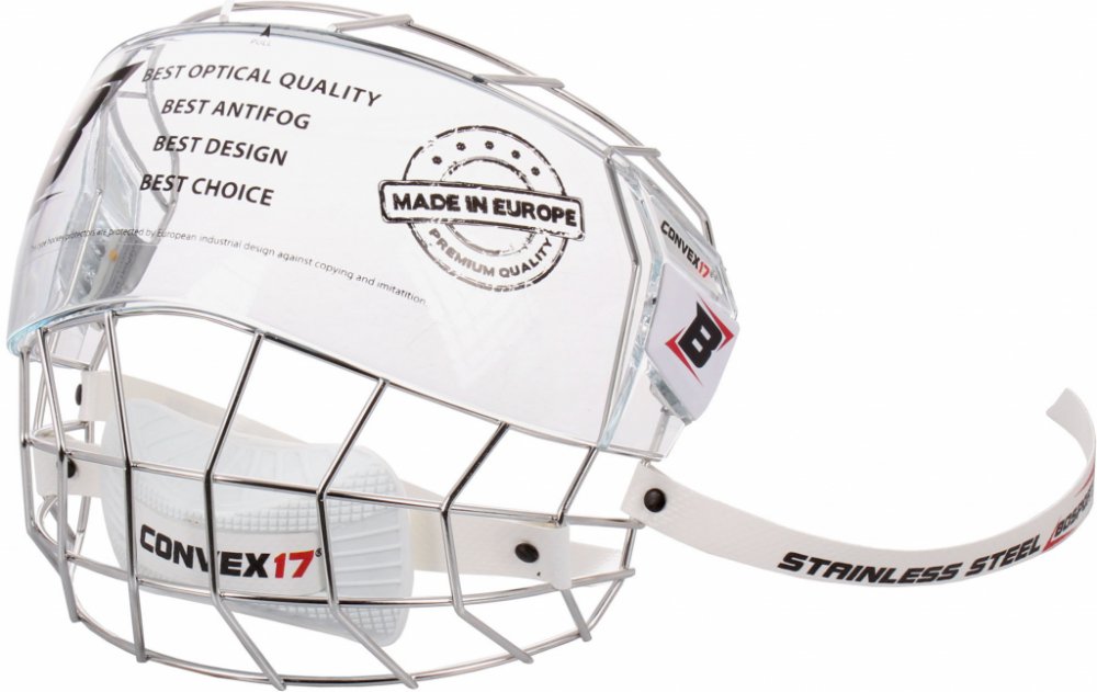 Atraktivní komplet mřížky s moderním chromovaným povrchem s čirým vypouklým plexi štítkem. Absolutně nic nerušící výhled zaručuje okamžité přivyknutí hráče na tento druh prozatím ještě nového chrániče obličeje.