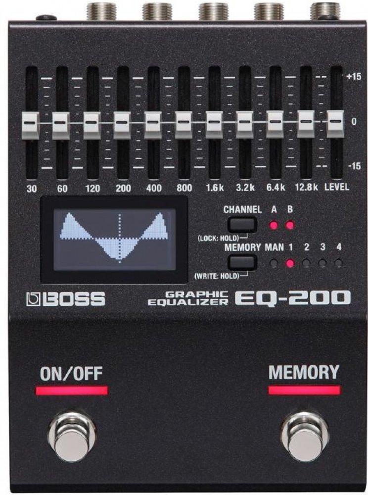 EQ-200 je ten nejvšestrannější kompaktní ekvalizér pro kytary a baskytary. Může se pochlubit dvěma rozsáhlými 10-pásmovými EQ kanály i vestavěným displejem, který přehledně zobrazuje momentální EQ křivku. Nastavitelné struktury toku signálu dokáží kanály nakonfigurovat pro stereo, paralelní či sériové zapojení a model umožňuje i přidání externích pedálů pro detailní tvarování zvuku před i po efektu. Frekvenční středy pro všech 10 pásem lze navíc nastavit na tři různé typy, čímž se výkon modelu EQ-200 optimalizuje pro rozdílné nástroje.