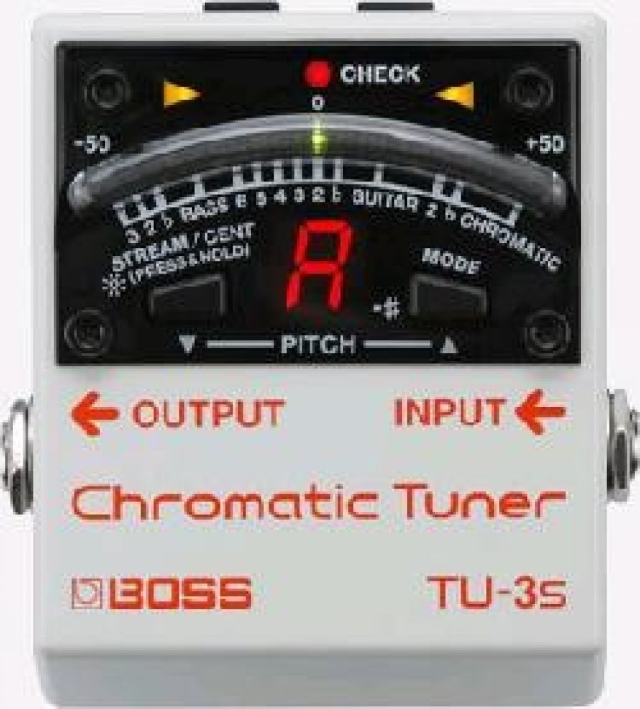 V bytelném těle stompboxu BOSS, najdete výbavu 21 segmentovou LED stupnicí, v režimu High-Brightness viditelnou i v té nejoslnivější záři reflektorů. Vyberte si režim ladění Chromatic nebo Guitar/Bass a sledujte ukazatel ověření ladění, funkce Accu-Pitch Sign. TU-3 obsahuje praktický indikátor jména noty, který umí také zobrazit noty 7-strunné kytary i 6-strunné basy, kromě režimu Flat-Tuning, který podporuje až šest půltónů. Jde o nový standard ladiček, bez kterého by se neměl žádný kytarista či basový hráč obejít!